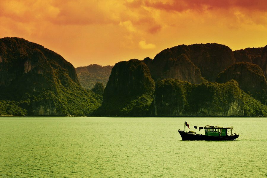 halong au couché du soleil, Vietnam