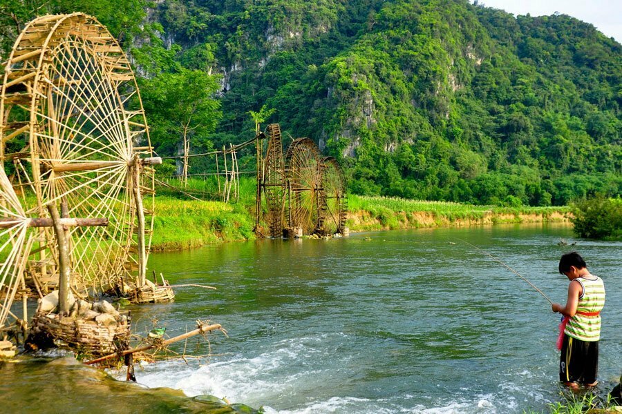 pu luong rivère et roues à eau