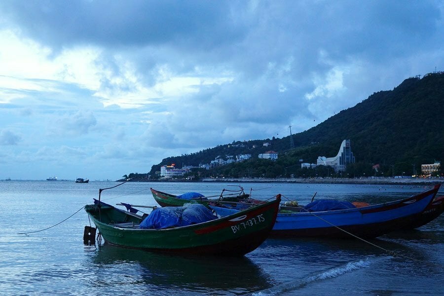 Barques amarées et ciel nuageux à Vung Tau