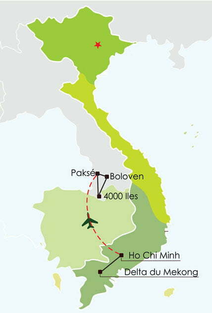 • Boloven: L’une des principales régions agricoles du Laos. Une région fertile essentiellement consacrée à la culture du café robusta, introduite par les colons français, mais aussi la culture du thé, du poivre, de la cardamone, et des plantations d’hévéas. Découvertes de magnifiques chutes d’eau réputées, Tad Lo et TadFane. Merveilleux endroit en pleine jungle…