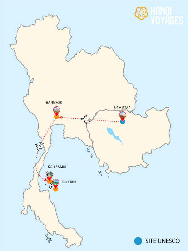 Circuit Cambodge Thaïlande 10 jours à la découverte du site mythique d’ANGKOR Siem Reap puis Bangkok, une capitale emblématique d’Asie à l’île paradis Koh Samui