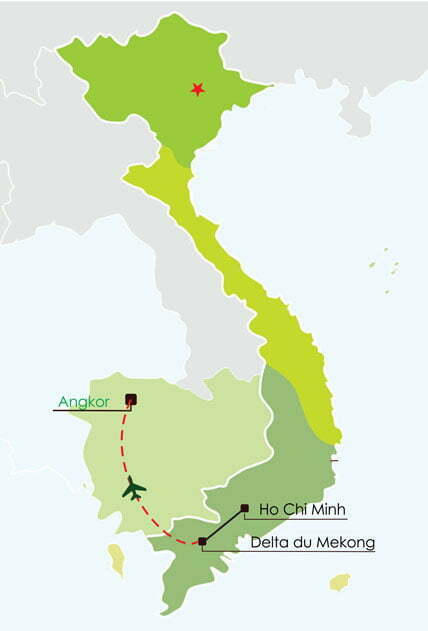 Jour 1 – HCM VILLE – AVION – SIEM REAP   Transfert pour le vol vers SIEM REAP. Accueil à l’aéroport et transfert à l’hôtel- voiture privée et guide privé. Nuit à l’hôtel avec petit déjeuner
