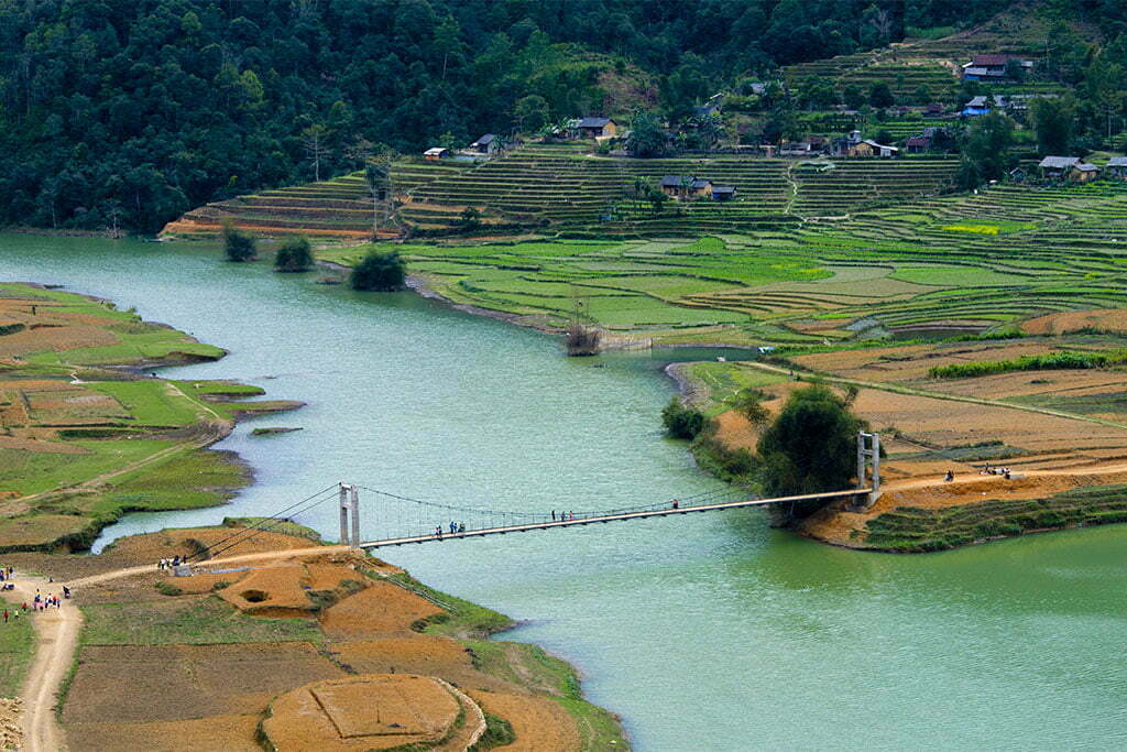 Débarquement pour la visite des cascades Dau Dang et randonnée dans les alentours à la découverte du petit village thay de Hua Tang. Au bord du lac, rencontre avec des Dzao rouge et H’mong qui vivent au bord de lac, puis retour en bateau au Village de Pac Ngoi.