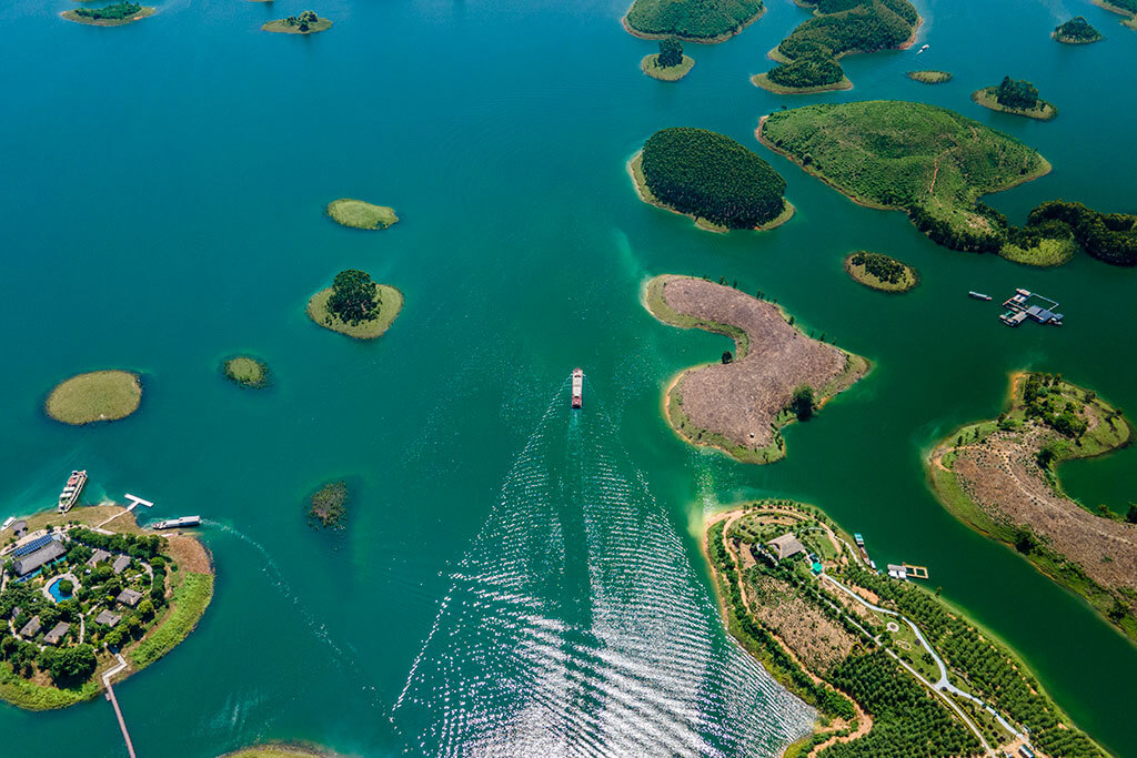 Promenade en bateau dans le décor féerique du lac Ba Be; le lac « des trois mers ». Croisière sur la rivière Nang qui se faufile dans une campagne cultivée avant de pénétrer dans un paysage de falaises calcaires. Visite en bateau dans la grotte Poung qui abrite une colonie abondante de chauves-souris et de serpents.